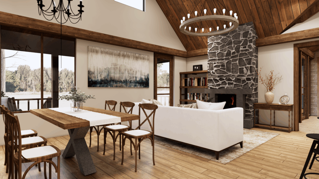 - Building Sections: Vertical cut-through views that explain ceiling heights, roof structure, and key construction details.