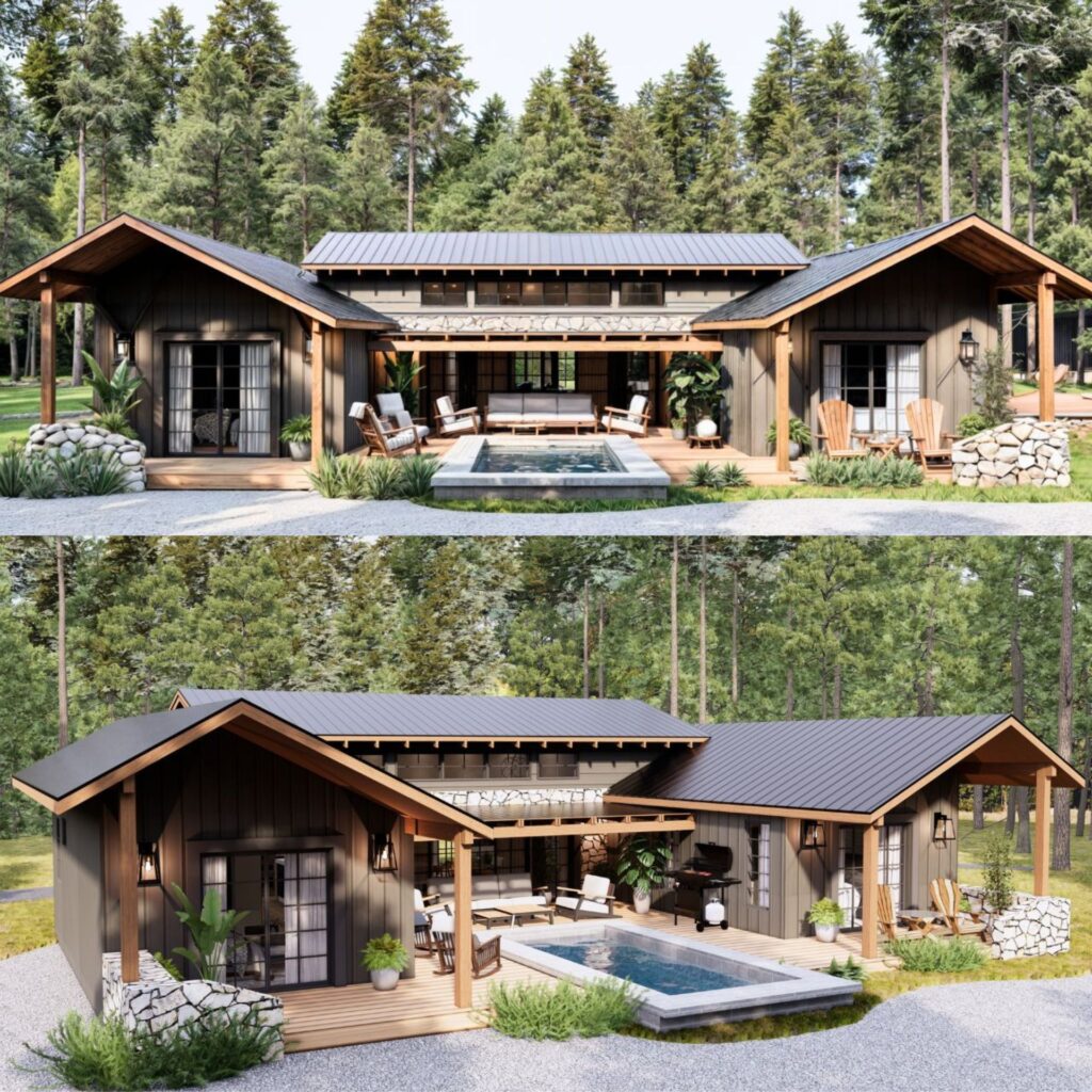 • Exterior Elevations: Front, rear, and side views that clearly illustrate the exterior design, materials, and proportions.