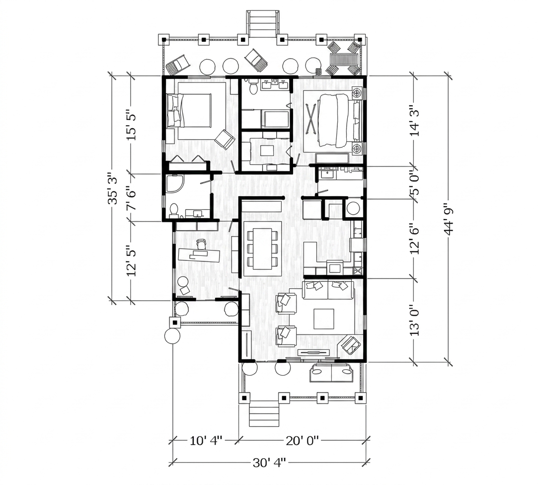 - Foundation Plan: Foundation layout and dimensions prepared for construction.