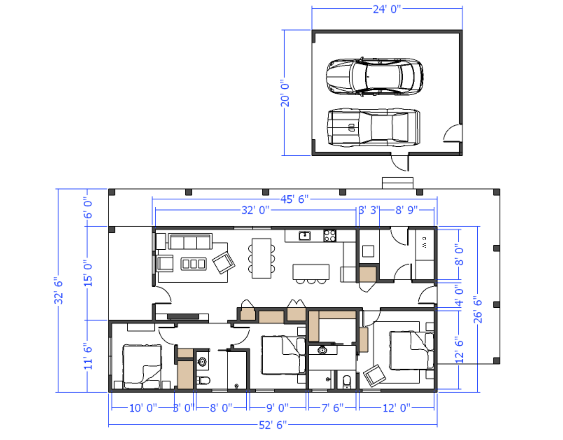 | 1 FLOOR | 32′ 6″ WIDTH | 52′ 6″ DEPTH | 2×6 Wall |