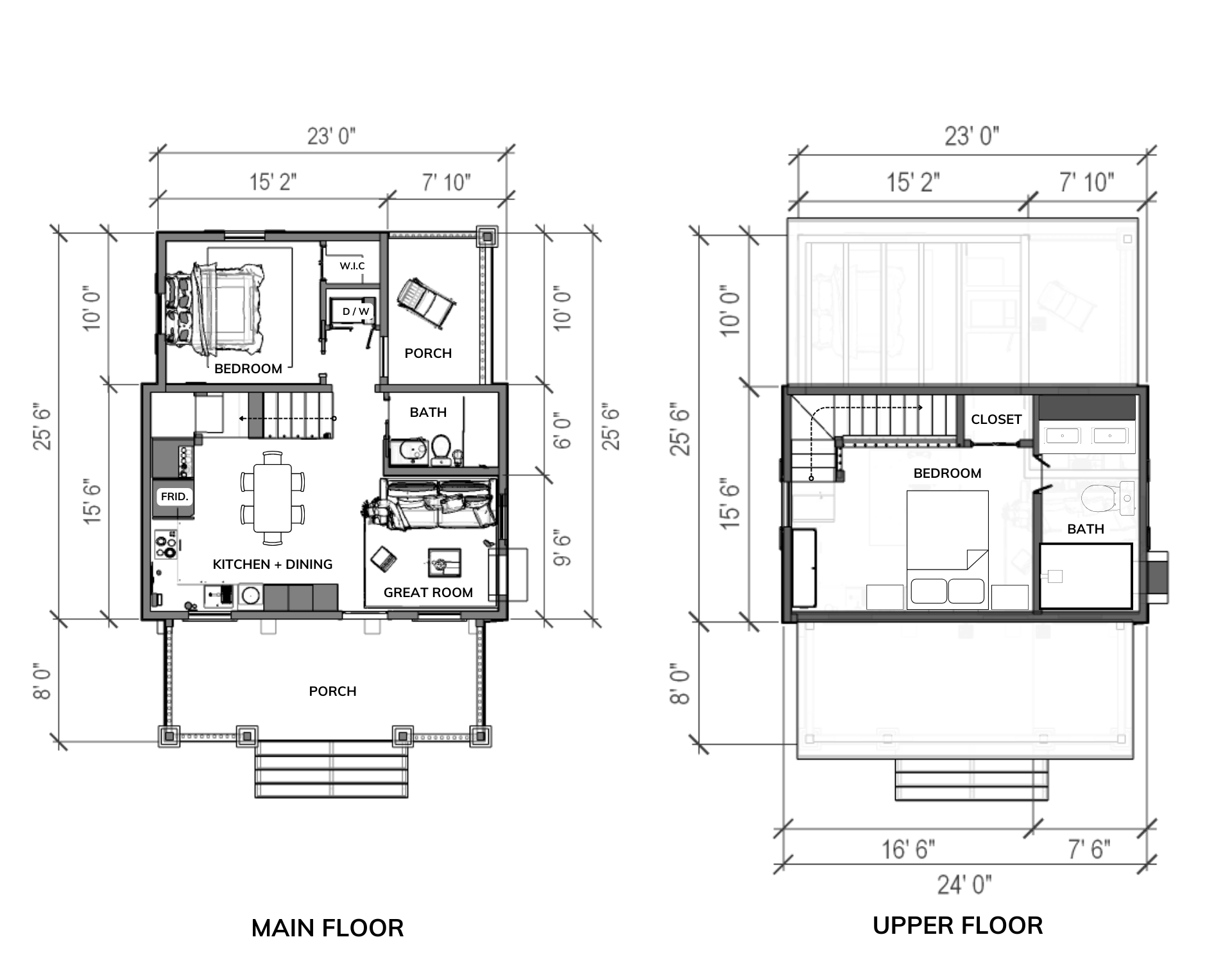 | LIVING AREA: 739 SQ FT MAIN FLOOR: 506.5 SQ FT UPPER FLOOR: 232.5 SQ FT | 2 BEDROOMs | 2 BATH | 8′ CELLING HEIGHT |