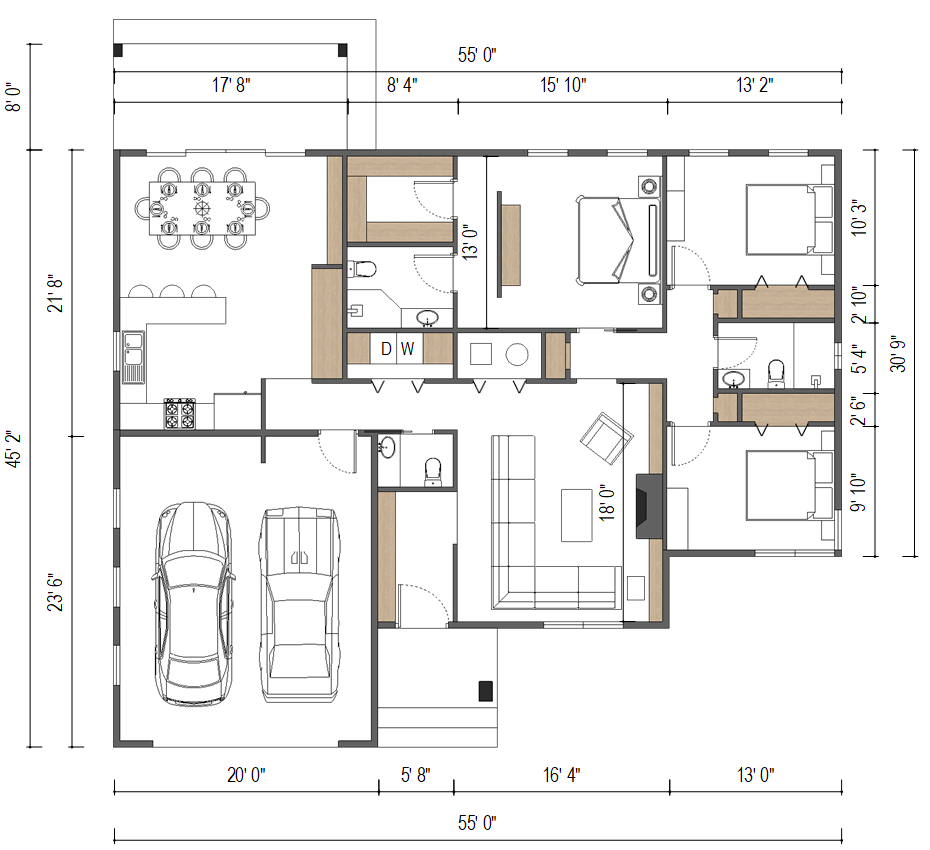| 1 FLOOR | 55′ 0″ WIDTH | 45′ 2″ DEPTH | Crawlspace |