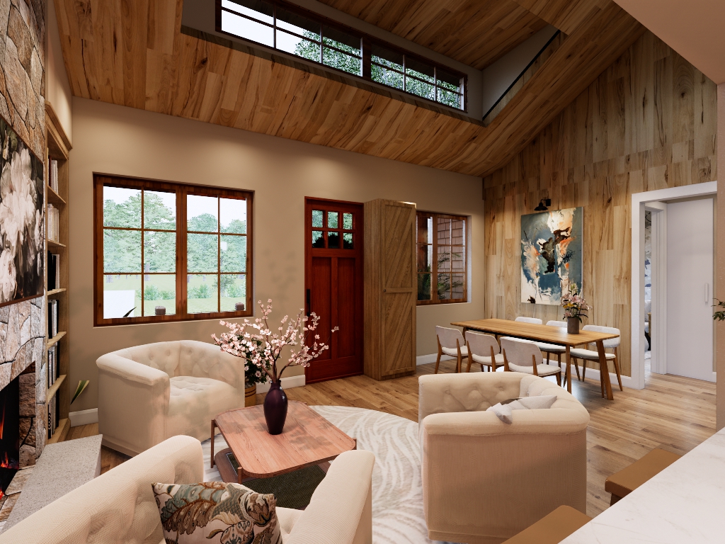• Building Sections: Vertical cut-through views that explain ceiling heights, roof structure, and key construction details.