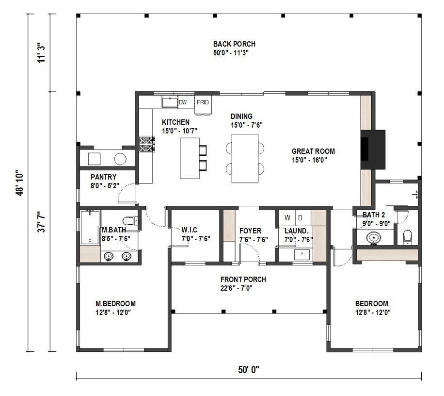| 1 FLOOR | 50′ 0″ WIDTH | 48′ 10″ DEPTH | CRAWL SPACE |