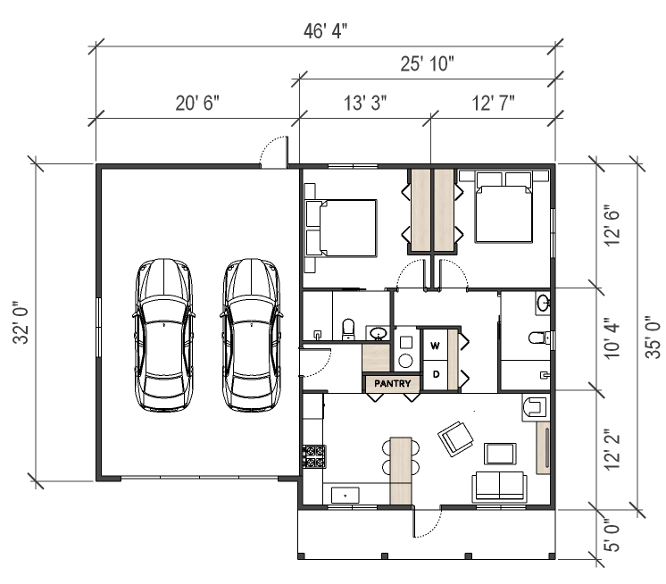 | 2×6 Wall | 25′ 10″ WIDTH | 35′ 0″ DEPTH | Crawl space |