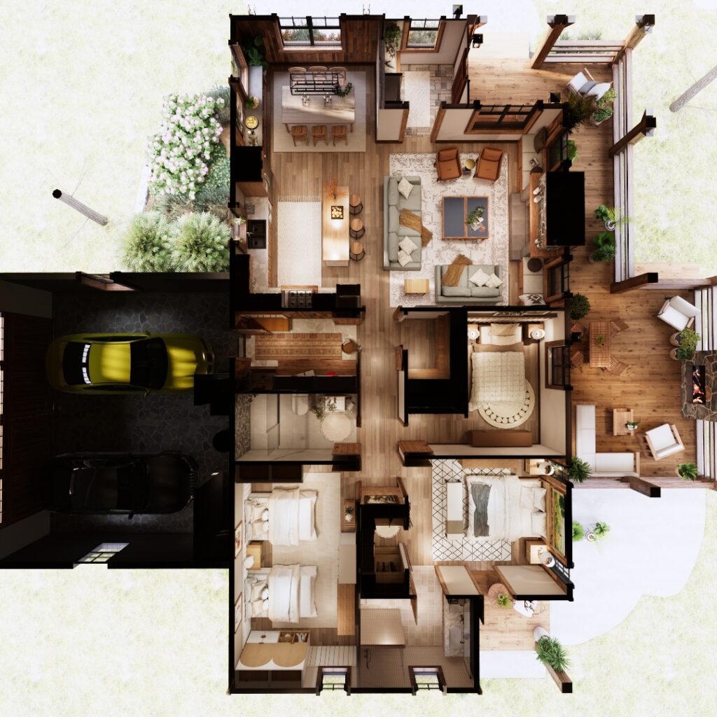 - Exterior Elevations: Front, rear, and side views that clearly illustrate the exterior design, materials, and proportions.