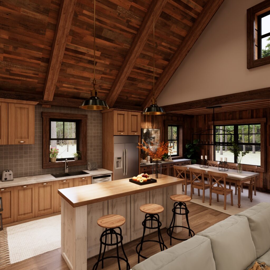- Building Sections: Vertical cut-through views that explain ceiling heights, roof structure, and key construction details.