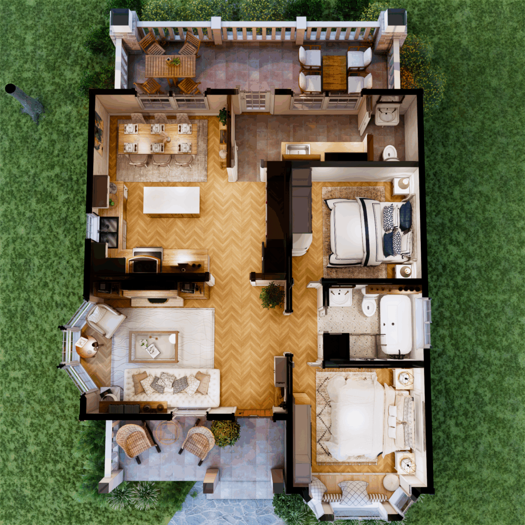 - Exterior Elevations: Front, rear, and side views that clearly illustrate the exterior design, materials, and proportions.