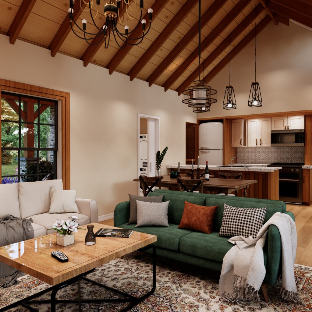 - Building Sections: Vertical cut-through views that explain ceiling heights, roof structure, and key construction details.