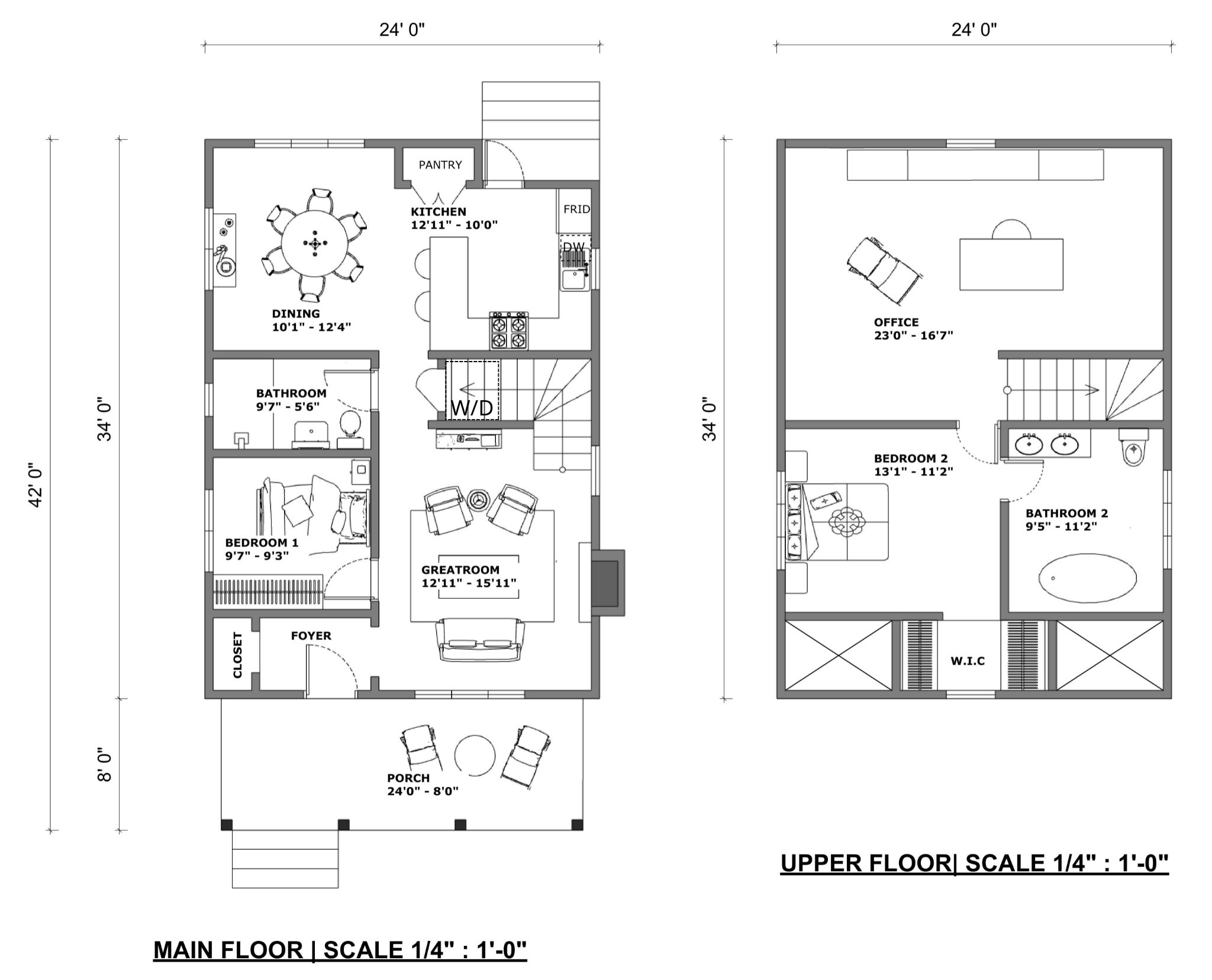 MAIN FLOOR: 810 SQ FT24′ 0″ WIDTH34′ 0″ DEPTH22’2″ HEIGHT